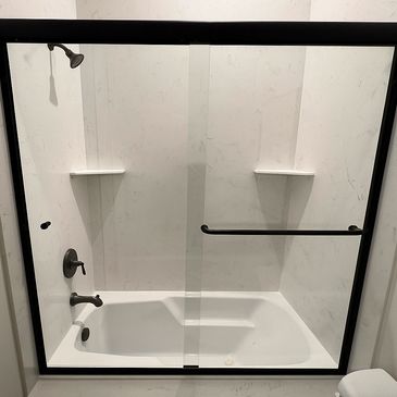 Expert craftsmanship providing clear views and elegant bathroom spaces with shower door and mirror installation for new builds and remodels.